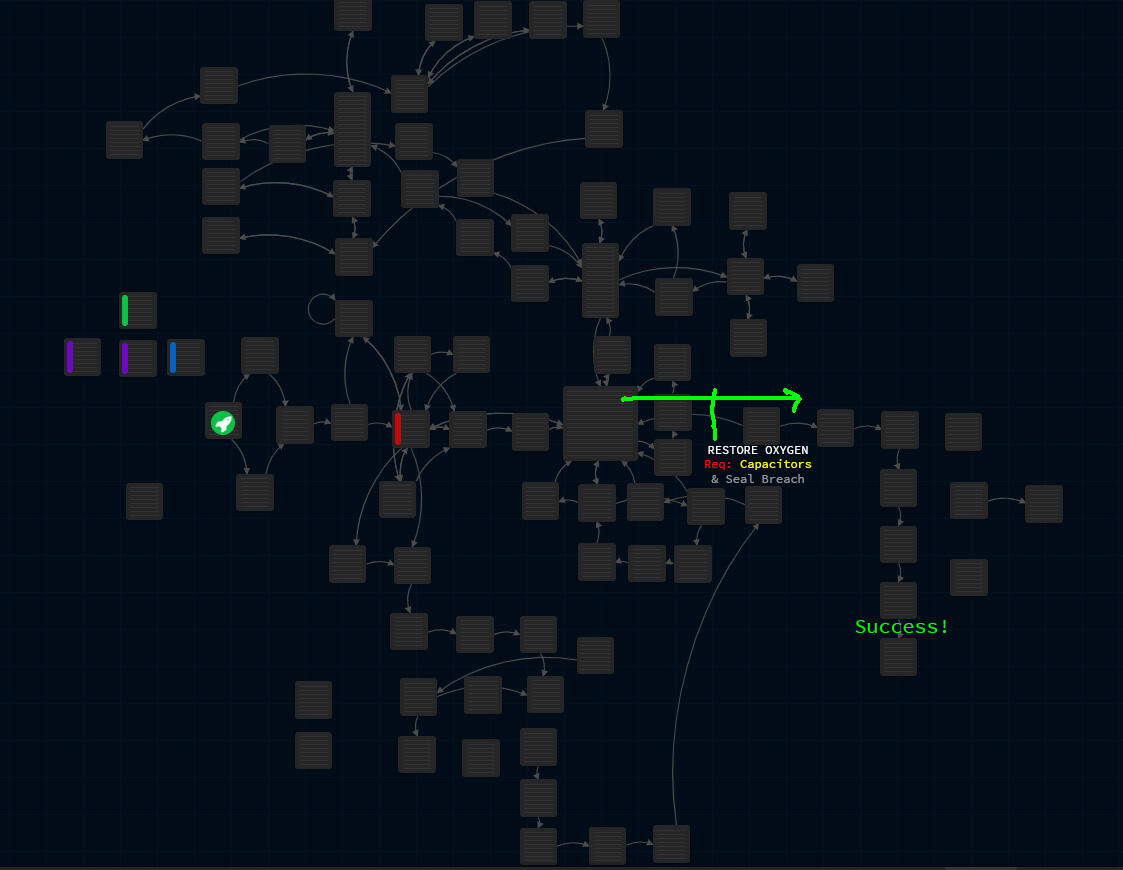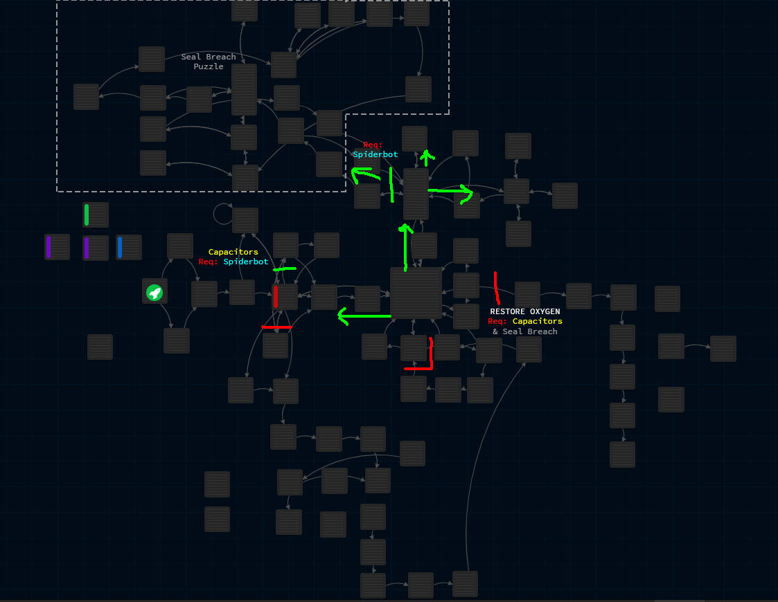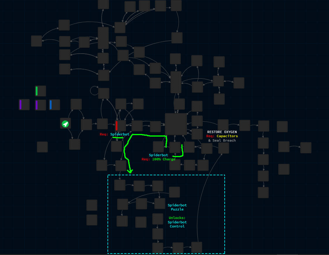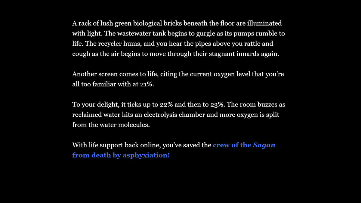 With the spiderbot's (and some other spiderbots') help and some clever exploration, the player can finally retrieve the ultracapacitors, seal the breach, and restore oxygen to the Seedship Sagan! You (they) did it!!